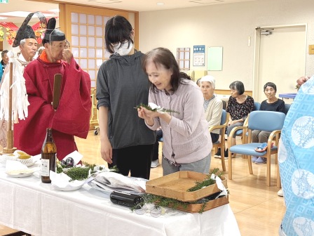 雨竜神社秋季例祭(獅子神楽見学) 雨竜神社の秋祭り。御神輿が施設までやってきました。 あいにくの空模様だったので、施設の中でご祈祷いただきました。 その後は雨竜町獅子神楽保存会の皆さんによる演舞をご披露いただきました。