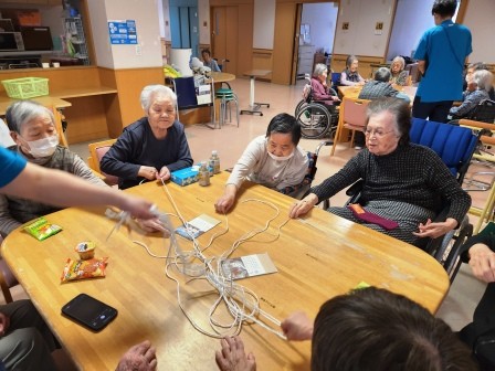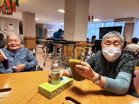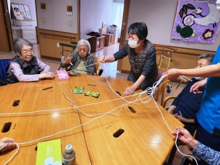今年のお楽しみ会は「宝引き」(ひもくじ)を開催しました。景品がたくさん当たった方も、そうでなかった方も…。