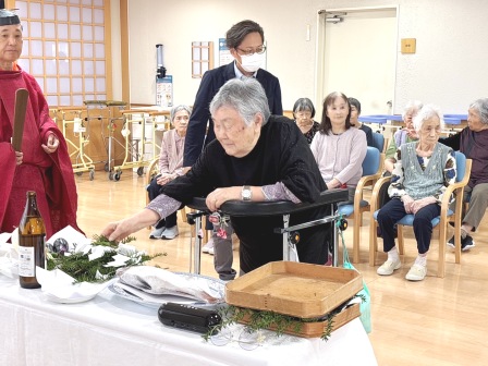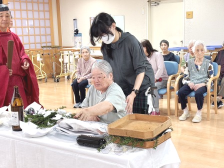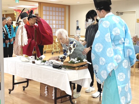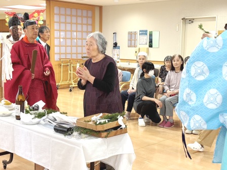 雨竜神社秋季例祭(獅子神楽見学) 雨竜神社の秋祭り。御神輿が施設までやってきました。 あいにくの空模様だったので、施設の中でご祈祷いただきました。 その後は雨竜町獅子神楽保存会の皆さんによる演舞をご披露いただきました。